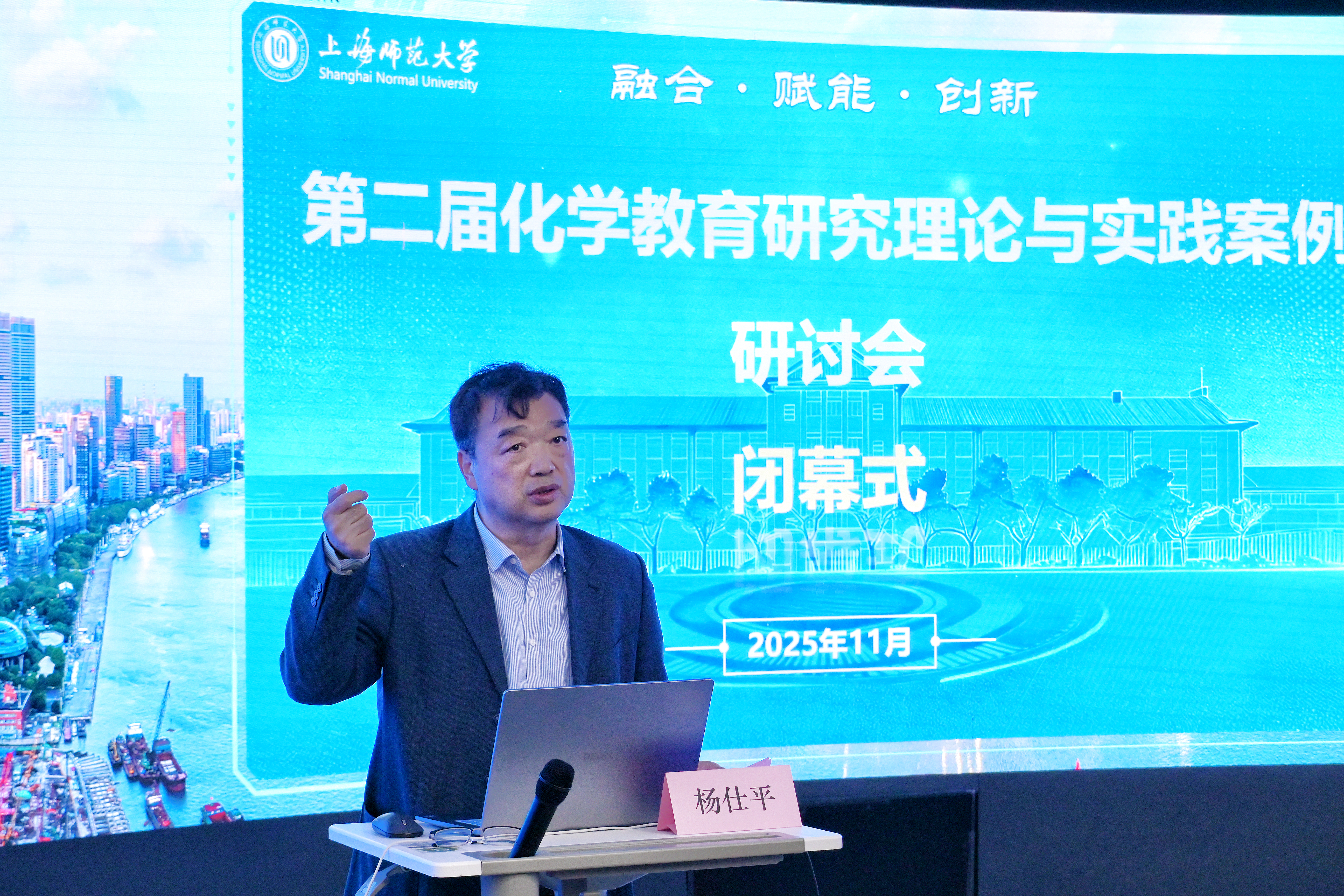 闭幕式上,上海师范大学化学与材料科学学院院长杨仕平教授致辞。他总结了本次研讨会的丰硕成果,鼓励全体与会者将交流所得转化为教学实践动力,携手推动我国化学教育事业持续繁荣发展。