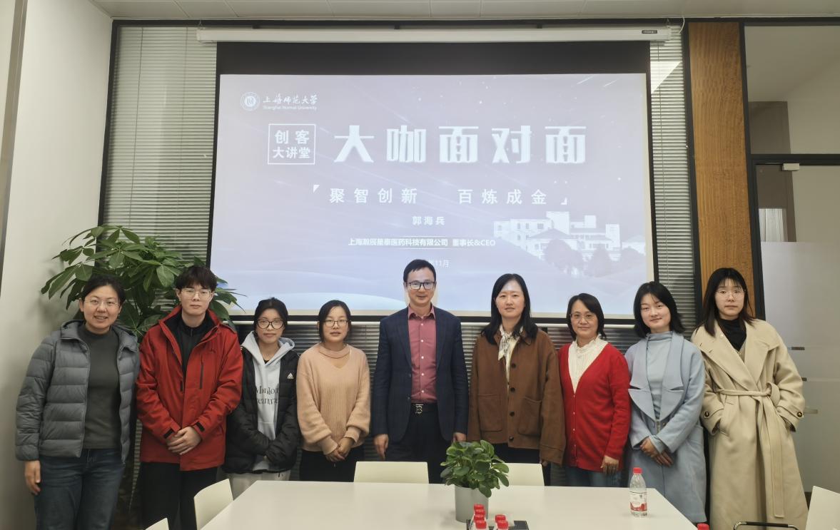 11月21日,化学与材料科学学院一行赴上海瀚辰星泰医药科技有限公司,走访该公司董事长、CEO——2003届物理化学专业校友郭海兵。学院党委书记叶蔚蓝,党委副书记、副院长卢丹凤,辅导员张亚玲、校友联络员李晓彤及研究生代表共同参与此次活动。