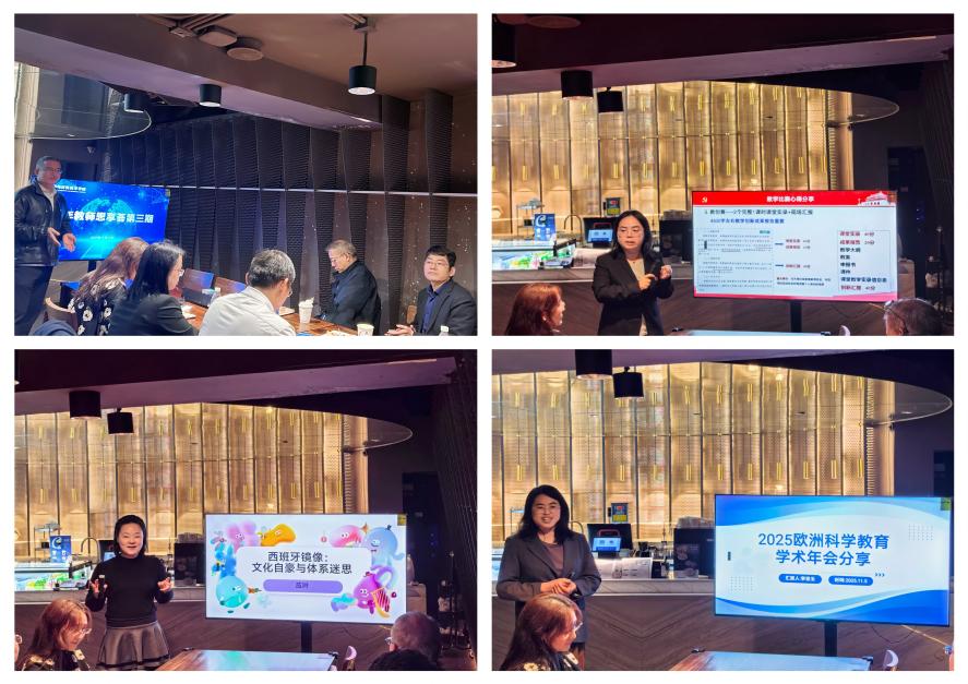 带着行走中的收获与思考,全体教师移步至思南书局诗歌店,从脚步的丈量到思想的碰撞,我们迎来了第三期“思享荟”的深度交流。本期聚焦“教师发展与育人实践”主题,陈雯雯老师结合自身担任荣誉班导师的工作实践和参加教学竞赛的切身经历,分享了在育人过程中倾注匠心、在教学相长中追求卓越的体会与思考。应叶老师则围绕赴西班牙进行短期学术交流的所见所闻所感,分享了国外高校文化氛围和生活氛围的所见所闻。李宝玉老师汇报了参加国际学科教学会议的心得,分享了学科前沿发展动向以及国际视野下教学改革的可能路径。