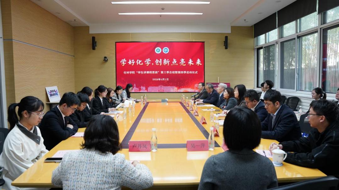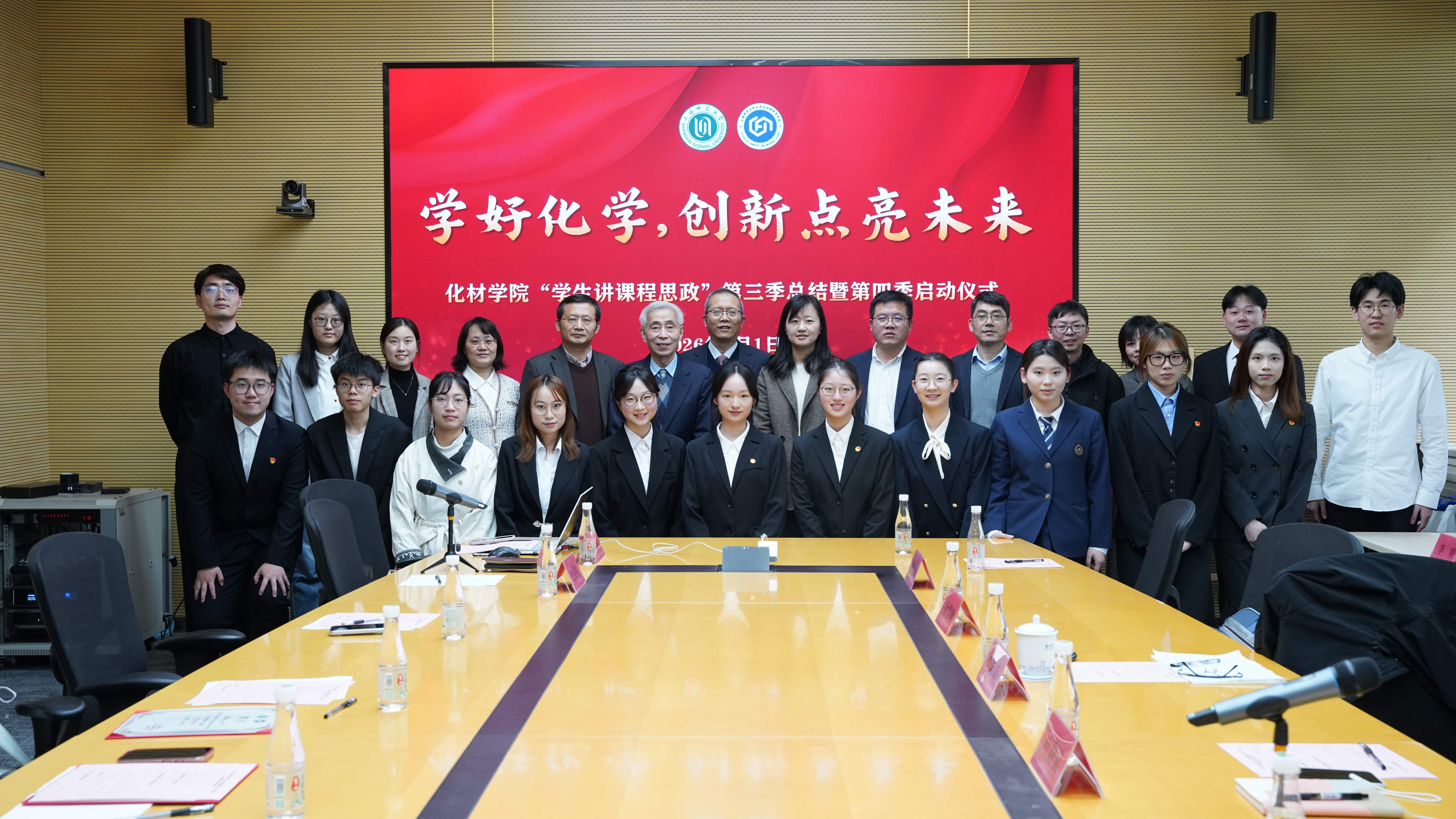 4月1日下午,化材学院“学生讲课程思政”第三季总结暨第四季启动仪式在徐汇校区会议中心五号会议室举行。校党委宣传部副部长周芸、教务处副处长杨帆,上海市普通高中化学教材《化学反应原理》主编竺际舜、上海市特级教师徐雪峰、徐汇区教育学院化学教研员陈浩等校外专家,化材学院领导班子、校内指导教师代表及第三季讲师代表、第四季学生讲师团成员齐聚一堂。
